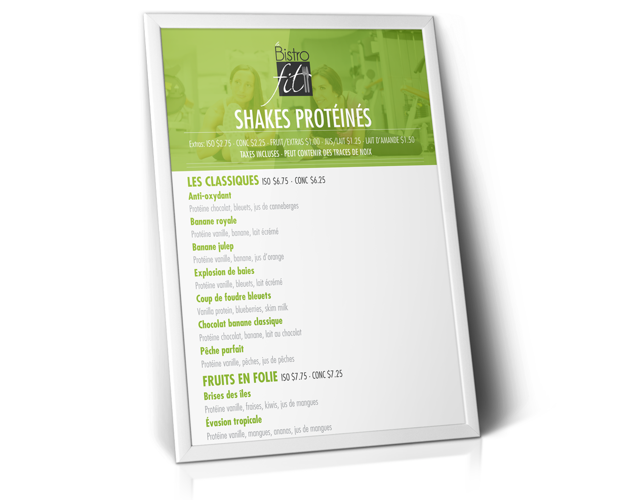 Le Bistro Fit required some new point of sales signs to attract new clientele inside Fitness City.
